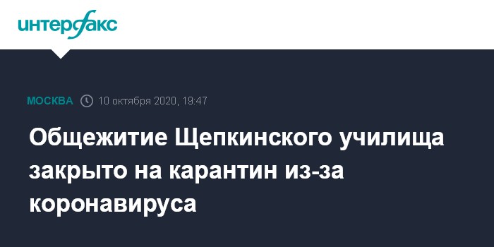 Москва. 10 октября. INTERFAX.RU - Общежитие Высшего театрального училища имени Щепкина при Малом театре закрыто на карантин на две недели из-за коронавируса, сообщил "Интерфаксу" ректор вуза Борис Любимов.