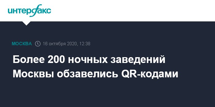 Москва. 16 октября. INTERFAX.RU - Более 200 ночных столичных заведений получили OR-коды для регистрации сотрудников и посетителей, сервис по регистрации на портале mos.ru прошел тестирование и готов к нагрузке, которую могут создать пользователи, сообщили "Интерфаксу" в пресс-службе департамента информационных технологий (ДИТ) Москвы в пятницу.