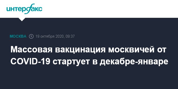 Москва. 19 октября. INTERFAX.RU - В декабре-январе в столице планируется начать массовую вакцинацию от коронавируса, что станет окончательной победой над пандемией, заявил мэр Москвы Сергей Собянин.