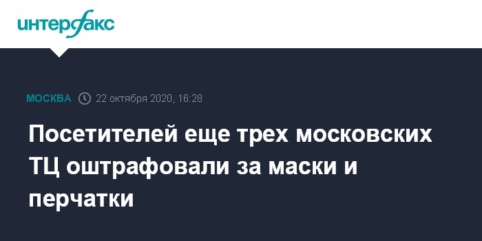 Москва. 22 октября. INTERFAX.RU - Еще 58 посетителей торгово-развлекательных центров Москвы оштрафованы за отсутствие масок и перчаток, сообщил главный инспектор Объединения административно-технических инспекций (ОАТИ) Михаил Нестеров журналистам в четверг.