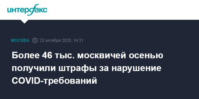 Более 46 тыс. москвичей осенью получили штрафы за нарушение COVID-требований