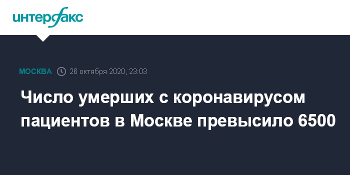Москва. 26 октября. INTERFAX.RU - Количество умерших от коронавируса в Москве увеличилось с 6442 до 6503 .