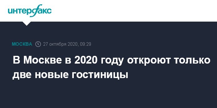 В Москве в 2020 году откроют только две новые гостиницы