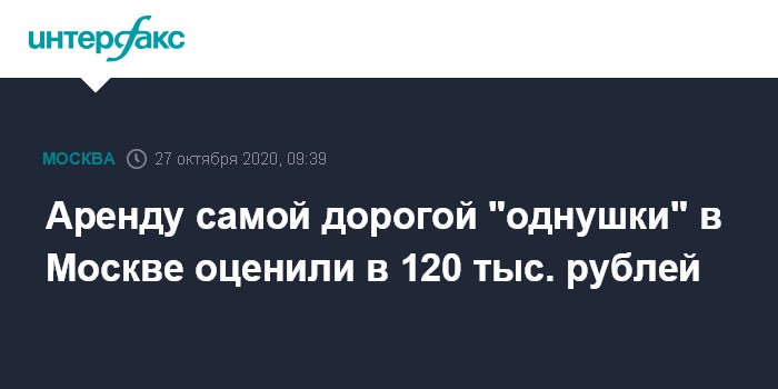 Москва. 27 октября. INTERFAX.RU - Максимальная стоимость аренды однокомнатной квартиры в Москве в октябре составляет 120 тыс. рублей в месяц, сообщили в компании "Инком-Недвижимость".