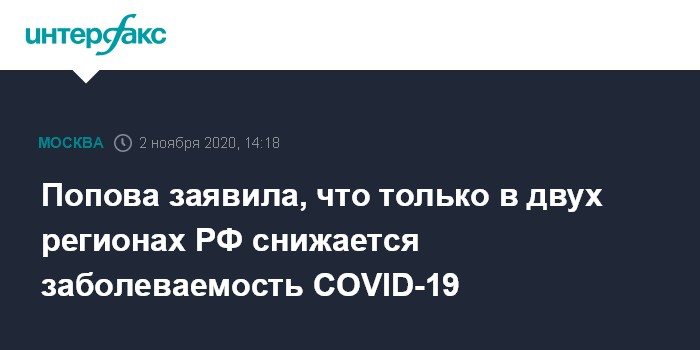 Попова заявила, что только в двух регионах РФ снижается заболеваемость COVID-19