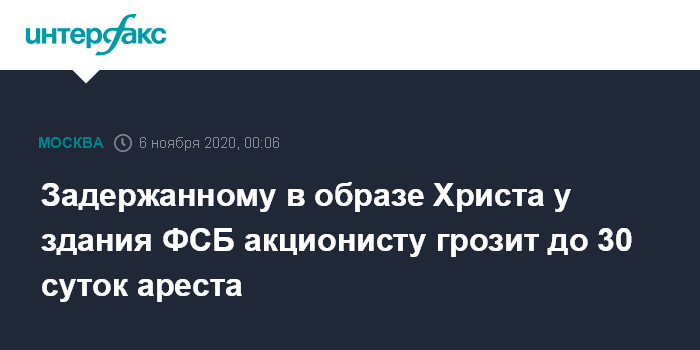 Задержанному в образе Христа у здания ФСБ акционисту грозит до 30 суток ареста