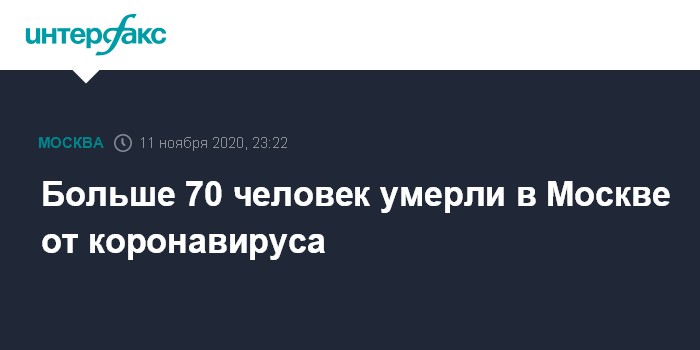 Москва. 11 ноября. INTERFAX.RU - За минувшие сутки в Москве умер 71 человек с пневмонией и положительным тестом на коронавирус, сообщил столичный оперштаб по контролю за коронавирусом в среду. Этот показатель сравним со смертностью в начале июня.