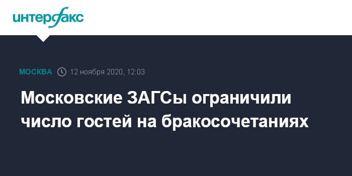 "Мы рекомендуем молодоженам перенести дату регистрации брака на более благоприятный период. И в целях предотвращения распространения коронавирусной инфекции в Москве начнут действовать ограничения по количеству гостей на торжественных церемониях заключения брака. В зале торжественной регистрации могут присутствовать не более семи человек, включая молодоженов, с условием обязательного использования средств индивидуальной защиты - масок и перчаток, а также с соблюдением социальной дистанции", - сообщила и.о. начальника Управления ЗАГС Москвы Светлана Уханева.