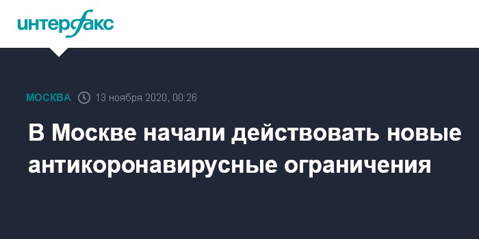 Москва. 13 ноября. INTERFAX.RU - Новый пакет ограничительных мер, направленных на борьбу с распространением коронавируса в Москве, вступает в силу в пятницу, 13 ноября, и будет действовать по 15 января 2021 года.