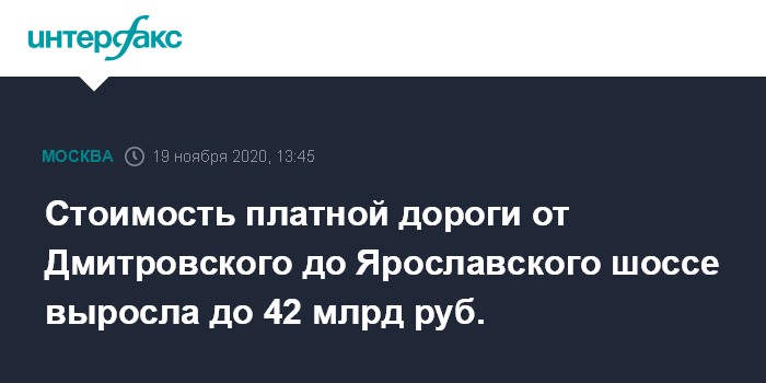 Стоимость платной дороги от Дмитровского до Ярославского шоссе выросла до 42 млрд руб.