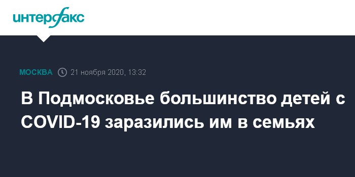 Москва. 21 ноября. INTERFAX.RU - Большинство заболевших COVID-19 в Подмосковье детей инфицировались в кругу семьи, сообщила младший научный сотрудник отделения детских инфекционных болезней МОНИКИ имени М. Ф. Владимирского Татьяна Сташко.