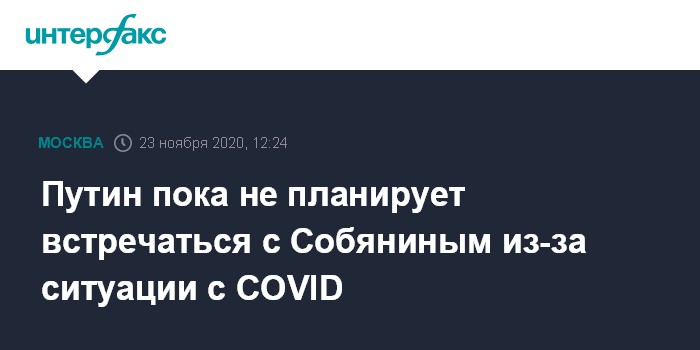 При этом он сказал: "С другой стороны, поскольку Сергей Семенович (Собянин) возглавляет одно из подразделений штаба (по борьбе с коронавирусом - ИФ) при правительстве и работает, собственно, с регионами, то, конечно, он находится в постоянном контакте с президентом. Это же не значит, что, если нет встречи, то они не общаются, идет постоянное общение, ежедневное".