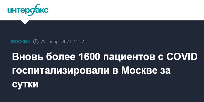 Москва. 25 ноября. INTERFAX.RU - За минувшие сутки в столице были госпитализированы 1635 пациентов с коронавирусом, сообщил оперативный штаб по контролю за инфекцией в столице в среду.