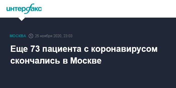 Москва. 25 ноября. INTERFAX.RU - Число жертв коронавируса в Москве увеличилось с 8530 до 8603, сообщил столичный оперштаб по контролю за коронавирусом в среду.