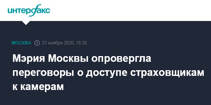"Информация о том, что ДИТ Москвы ведет переговоры о предоставлении страховым компаниям доступа к городской системе видеонаблюдения, не соответствует действительности. ДИТ не ведет подобных переговоров, обращений по данному вопросу в департамент в 2020 году не поступало", - заявили "Интерфаксу" в пресс-службе департамента.