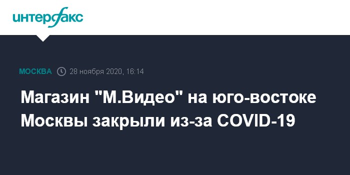 Москва. 28 ноября. INTERFAX.RU - Магазин электроники "М.Видео" на Рязанском проспекте Москвы, где были выявлены факты заболевания сотрудников коронавирусом, опечатан специалистами Роспотребнадзора.