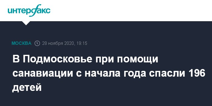 В Подмосковье при помощи санавиации с начала года спасли 196 детей