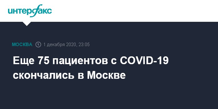 "В Москве за сутки скончались 75 пациентов, у которых был подтвержден диагноз пневмония и получен положительный результат тестов на коронавирусную инфекцию. Этот показатель сравним со смертностью от COVID-19 в начале июня", - сказал собеседник агентства.