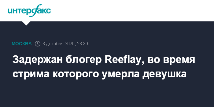 Задержан блогер Reeflay, во время стрима которого умерла девушка