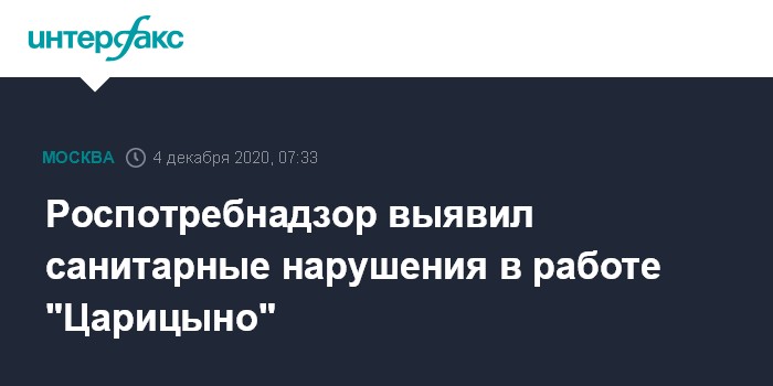 Роспотребнадзор выявил санитарные нарушения в работе "Царицыно"