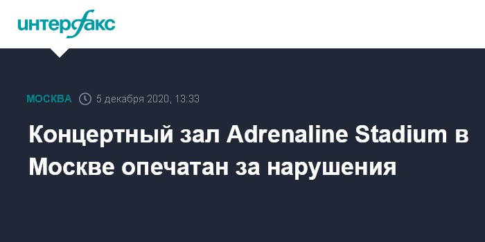 Москва. 5 декабря. INTERFAX.RU - Роспотребнадзор опечатал московский концертный зал Adrenaline Stadium до решения суда из-за нарушения санитарных норм в условиях борьбы с коронавирусом.