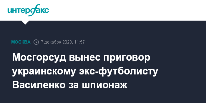 Мосгорсуд вынес приговор украинскому экс-футболисту Василенко за шпионаж