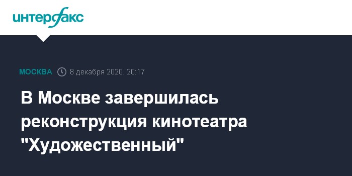 Москва. 8 декабря. INTERFAX.RU - Реконструкция московского кинотеатра "Художественный", которая началась в 2014 году, завершена. Об этом сообщили в пресс-службе Сбербанка, который занимался реконструкцией кинотеатра.