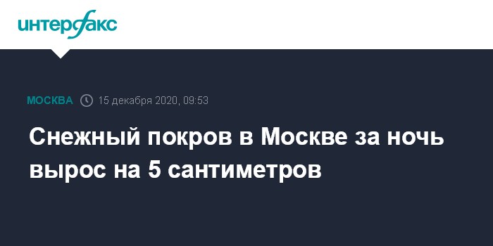 Москва. 15 декабря. INTERFAX.RU - В Москве за ночь высота снежного покрова выросла с пяти до десяти сантиметров, сообщили в метеобюро Москвы, ссылаясь на данные с главной метеостанции на ВДНХ на 9 часов утра.
