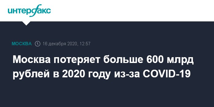 Москва. 16 декабря. INTERFAX.RU - В 2020 году бюджет Москвы потеряет больше 600 млрд рублей из-за коронавируса, заявил в годовом отчете мэр города Сергей Собянин.