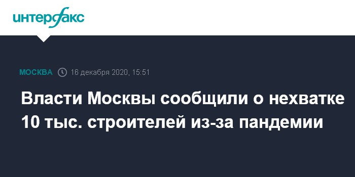 Власти Москвы сообщили о нехватке 10 тыс. строителей из-за пандемии