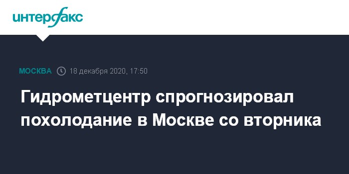 "Со вторника, 22 декабря, начинается понижение температуры. Осадки будут возможны местами. Температура воздуха в ночные часы в Москве будет опускаться до 7-9 градусов мороза, по области до двухзначных отрицательных значений, днем будет от -3 до -8 градусов, что соответствует климатической норме декабря", - сказал Вильфанд.