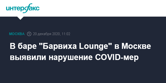 "Бар "Барвиха Lounge" (Дербеневская набережная, дом 7) в Даниловском районе могут закрыть на 90 суток за нарушения мер против COVID-19. В ходе обследования выявлено, что заведение продолжало обслуживать посетителей даже в 3 часа ночи. В заведении находилось порядка 100 гостей, посетители курили кальяны", - рассказал он журналистам.