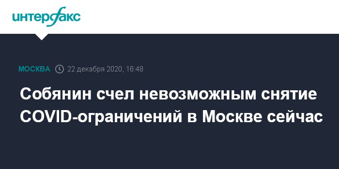 Москва. 22 декабря. INTERFAX.RU - Снимать действующие ограничительные меры, введенные в Москве в связи с пандемией, в настоящее время невозможно, заявил мэр столицы Сергей Собянин.