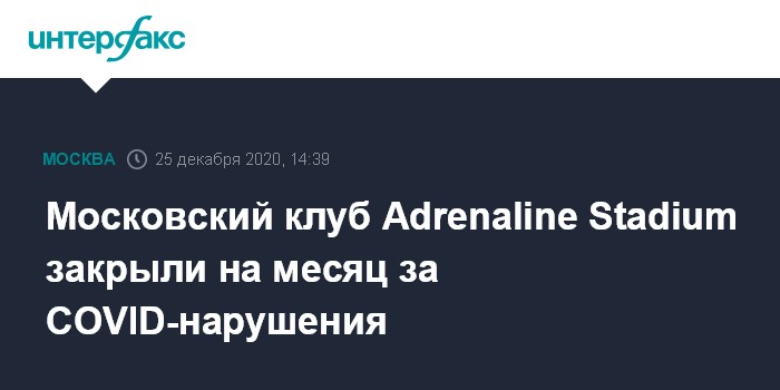 Москва. 25 декабря. INTERFAX.RU - Савеловский суд Москвы в пятницу постановил приостановить работу клуба Adrenaline Stadium на 30 суток за невыполнение мер по профилактике коронавируса, сообщается на сайте городского управления Роспотребнадзора.