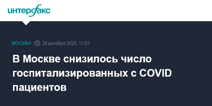 Москва. 28 декабря. INTERFAX.RU - Количество госпитализированных с COVID-19 в Москве снизилось более чем на 350 человек по сравнению с прошлыми сутками.