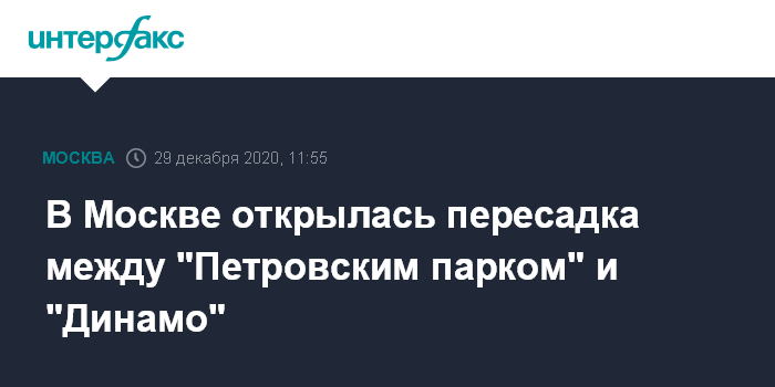 В Москве открылась пересадка между "Петровским парком" и "Динамо"