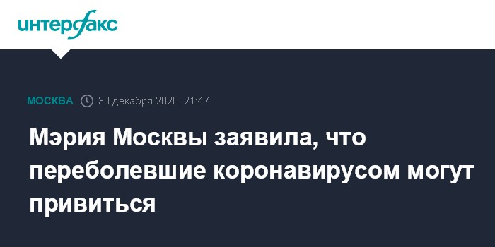 Москва. 30 декабря. INTERFAX.RU - Переболевшие коронавирусом люди могут привиться от него, наличие антител не является противопоказанием к вакцинации, сообщают в мэрии Москвы.