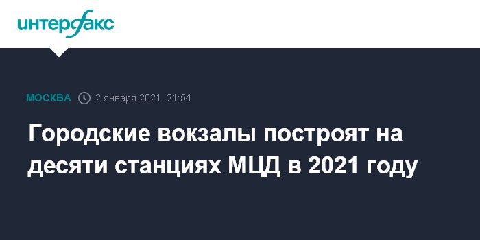 Москва. 2 января. INTERFAX.RU - Строительство городских вокзалов на действующих и будущих станциях Московских центральных диаметров (МЦД) продолжат в 2021 году, сообщил мэр Москвы Сергей Собянин.