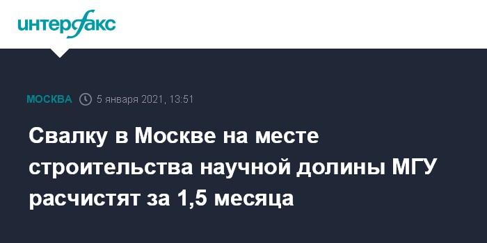 В конце декабря Собянин сообщил о начале расчистки самой большой свалки строительного мусора на месте будущей научно-технологической долины МГУ.