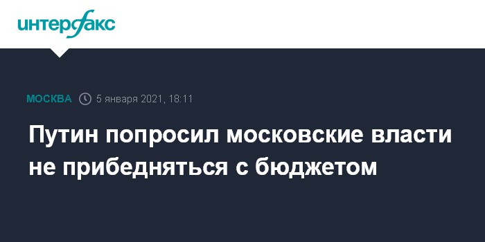 "Выражая слова благодарности за проделанную работу, хочу выразить надежду на то, что и в наступившем 2021 году вы и все ваши коллеги будут действовать так же эффективно. И надеюсь, ничего заимствовать вам не придется, бюджет Москвы достаточно сильный, не только сбалансированный, но и верстается с профицитом, причем значительным профицитом. Так что вы не прибедняйтесь, пожалуйста, все у вас в этом смысле в порядке", - сказал Путин на совещании по вопросам социальной защиты населения.