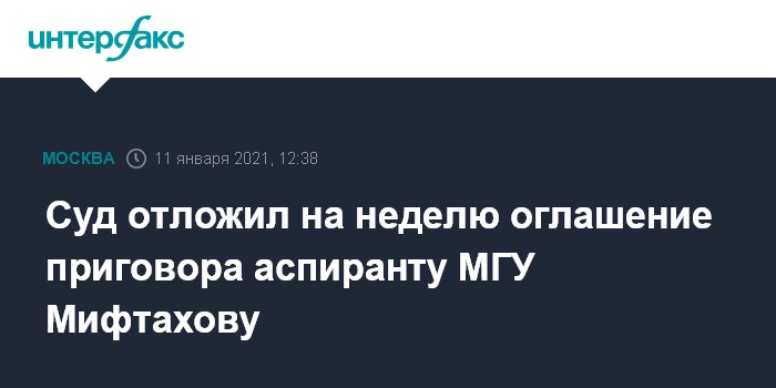 Суд отложил на неделю оглашение приговора аспиранту МГУ Мифтахову