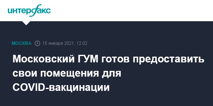 Москва. 15 января. INTERFAX.RU - Руководство ГУМа готово предоставить площади магазина для организации мобильного пункта вакцинации от коронавируса, следует из открытого письма главы группы компаний Bosco Михаила Куснировича.