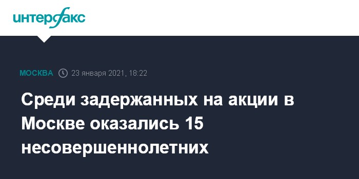 Москва. 23 января. INTERFAX.RU - Порядка 15 несовершеннолетних были задержаны на несогласованной акции в Москве, большинство уже отпущены, сообщила уполномоченный при президенте РФ по правам ребенка Анна Кузнецова.