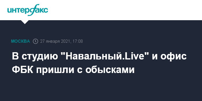 Москва. 27 января. INTERFAX.RU - Обыск проводится в студии канала "Навальный.Live" и московском офисе ФБК (признан в РФ иностранным агентом).