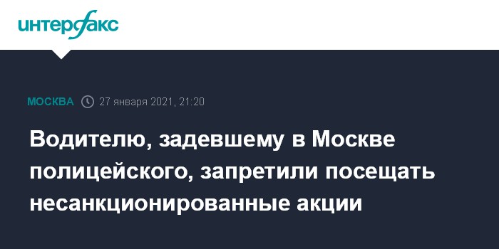 Водителю, задевшему в Москве полицейского, запретили посещать несанкционированные акции