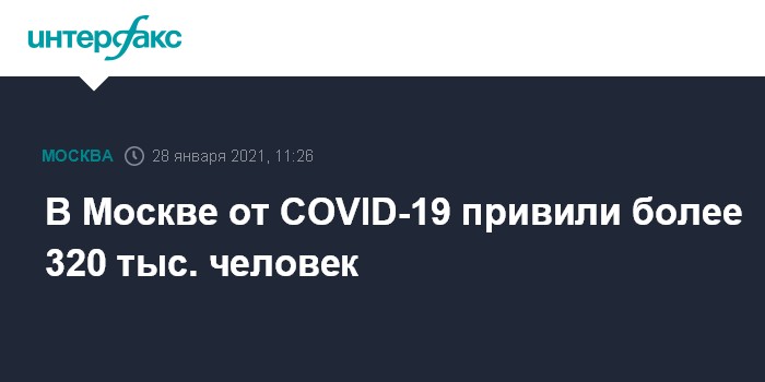 Москва. 28 января. INTERFAX.RU - Более 320 тыс. москвичей поставили прививку от COVID-19, ежедневно вакцинацию проходит до 15 тыс. жителей столицы, сообщила в четверг заммэра Москвы по вопросам соцразвития Анастасия Ракова.