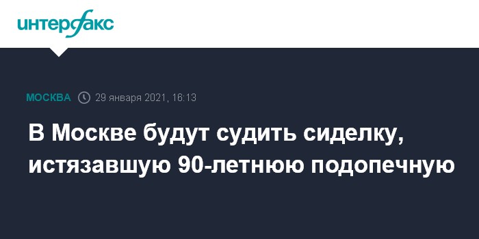 Москва. 29 января. INTERFAX.RU - Никулинский суд Москвы рассмотрит дело сиделки из Узбекистана, применявшей силу к 90-летней женщине, за которой она должна была следить, сообщает в пятницу столичная прокуратура.