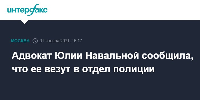 "Ее (Юлию Навальную - ИФ) пока не доставили в какие-либо конкретное ОВД. Едут в сторону Троицка", - сообщила "Интерфаксу" ее адвокат Светлана Давыдова.
