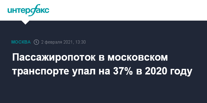 Москва. 2 февраля. INTERFAX.RU - Из-за пандемии в 2020 году пассажиропоток в транспорте Москвы сократился на 37% или на 8,6 млн поездок в каждый будний день, сообщил заммэра города по вопросам транспорта Максим Ликсутов. Он написал об этом колонку для единого транспортного портала.