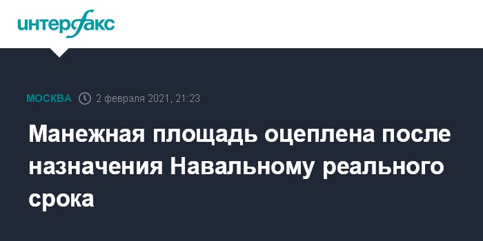 Москва. 2 февраля. INTERFAX.RU - Правоохранительные органы оцепили Манежную площадь в центре Москвы на фоне решения суда, заменившего оппозиционеру Алексею Навальному условный срок на реальный, передает корреспондент "Интерфакса".